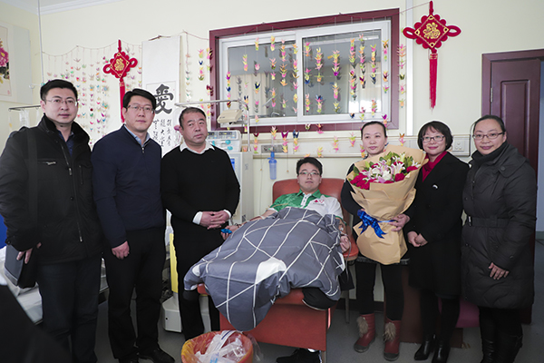 当日上午,石大党委副书记、副校长韩尚峰,学生工作部(处)、地球物理学院、校医院等相关单位负责人到空军特色医学中心看望慰问刘晨昱。中国造血干细胞捐献者资料库北京管理中心、昌平区红十字会等单位相关领导也前往医院表达对刘晨昱的关心和感谢,并为他颁发了荣誉证书和纪念铭牌。