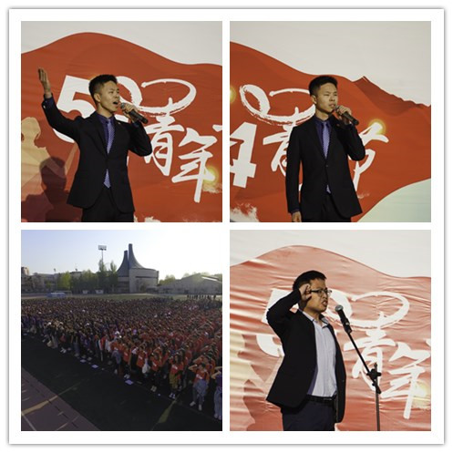活动在雄壮的国歌声中拉开帷幕,全体团员齐唱国歌,庄严肃穆,眼神坚毅,国旗沐浴着清晨的微风徐徐升起。接着,来自信息科学与工程学院自动化18-1班的刘丰硕同学以《复兴中华,我辈担当》为主题,进行了国旗下演讲,他以讲述100年前五四运动爆发的历史开始,回顾了中国青年在中国共产党的领导下昂首阔步挺进新时代的不平凡历程,最后呼吁团员青年传承五四精神,坚定爱国信念,把握美好青春,练就过硬本领,建功新时代。其后,教职工团总支书记张国泽作为领誓人,全体团员庄严宣誓,进一步增强团员青年理想信念、提升光荣感、责任感。随后,校团委书记周玉成给团员青年送上寄语,勉励青年积极弘扬五四精神,勇立时代潮头,做新时代的爱国青年、进步青年、追梦青年,争做担当民族复兴大任的时代新人!最后,由勘查18-3团支部,18-4团支部带领全体青年团员齐唱团歌,“我们是五月的花海,用青春拥抱时代……”,团员青年们用饱满的精神,洪亮的声音诠释了青春活力。