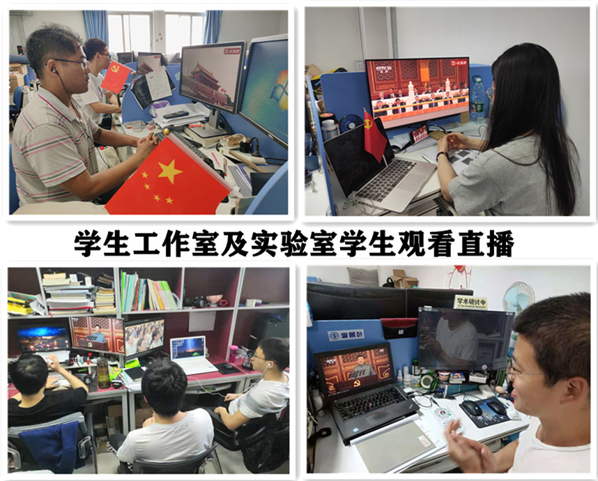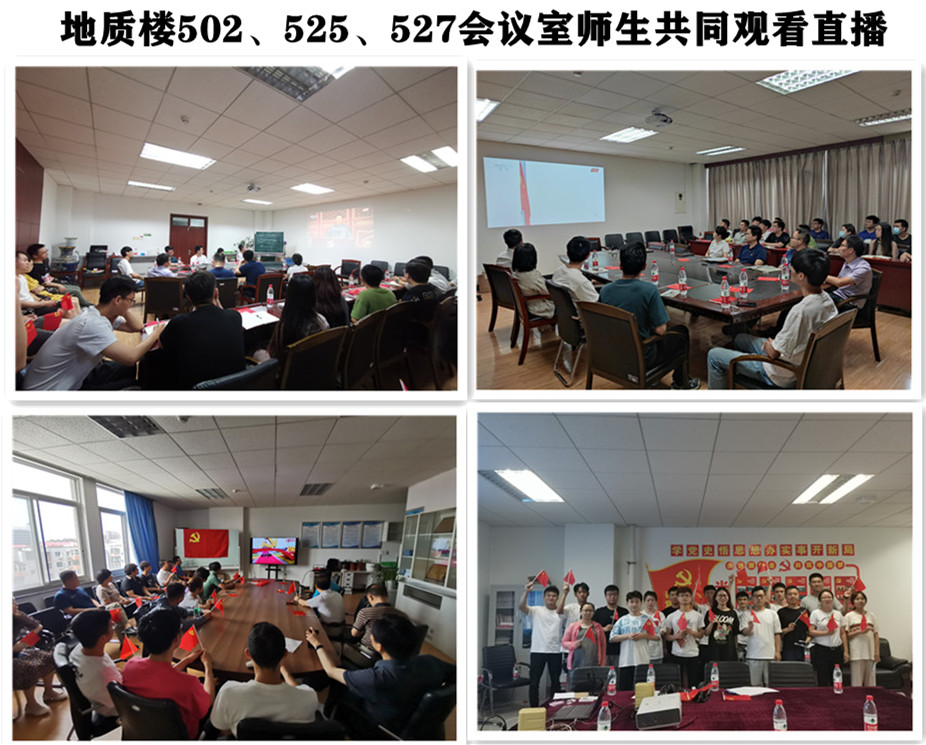 学院共设置3个主会场,分别在地质楼502、525、527会议室,学院领导班子和师生共同参与、共同聆听、共同学习,其他支部和班级分别在办公室、实验室、宿舍等地观看直播。习近平总书记的讲话铿锵有力,深入人心,师生深切聆听,感悟颇深。