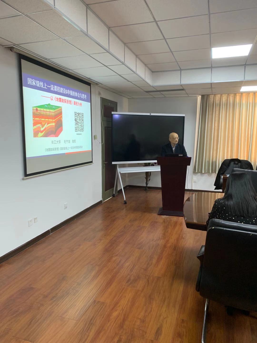 12月9日下午,地球科学学院和地球物理学院联合举办教学研讨会,邀请教育部高等学校地球物理学类教学指导委员会委员、湖北省教学名师毛宁波教授作题为“国家一流课程与一流专业建设的体会与思考”的学术讲座。我院教学团队负责人、青年教师代表参加了此次研讨学习。