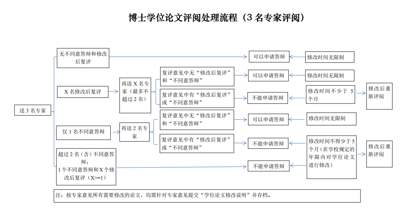 院内抽审论文,隐名评阅,送审院内专家。专家评阅结果出现“修改后复评”,“不同意答辩”意见,修改论文后再次院内评审。“修改后复评”再送审1个专家,“不同意答辩”再送审2个专家,直至论文达到评阅意见无“修改后复评”、“不同意答辩”意见。