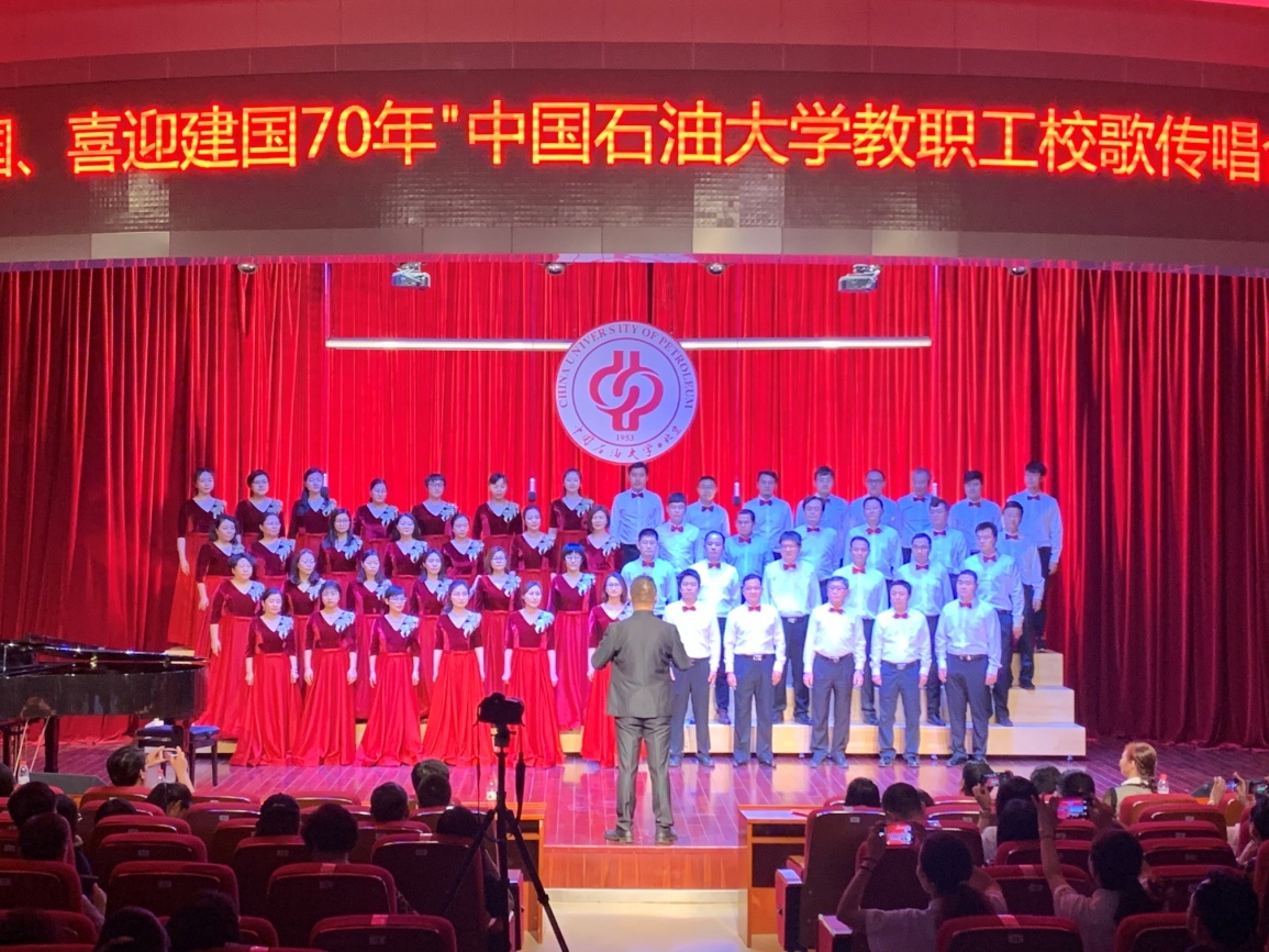 5月30下午,在院党委和院工会组织下,地球科学学院50余名教职工参加了校工会组织的“颂歌献祖国,喜迎建国70年”合唱展演活动。我院教职工演唱了校歌《我为祖国献石油》和《我和我的祖国》,展示了我院教职工积极向上、团结一致的风采,同时也为祖国七十华诞献上赞歌。为了准备好此次演出,院工会聘请了专业音乐老师对参加合唱的教职工进行了多次声乐训练,演出当天从中午换服装、演出前排练一直到演出结束,参加的教职工始终都是热情饱满,在舞台上用饱含深情的歌声为伟大祖国七十华诞送上了美好祝福。