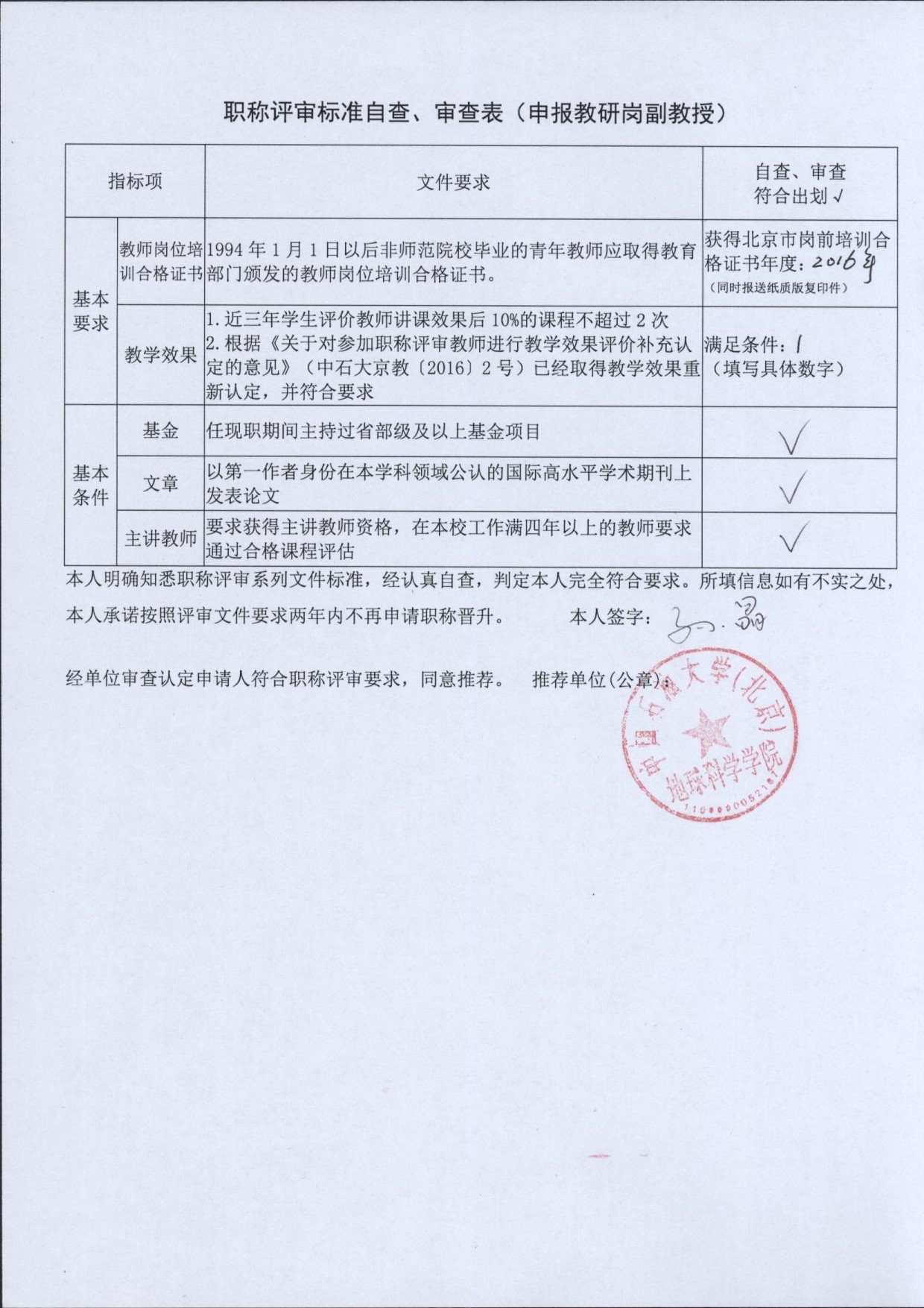 根据《中国免费靠逼视频(北京)关于2018年度专业技术职务评审工作的通知》的要求,学院现对我院申报高级专业技术职务人员材料进行审查,并将申报人员“申报高级专业技术职务任职资格基本简况表”、“职称评审标准自查、审查表”进行公示,公示期自2018年5月25日—5月31日,共计7天,有异议者请于公示期内联系地球科学学院院办。
