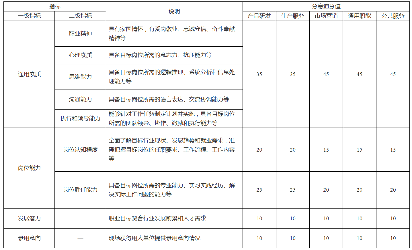 设5个分赛道。其中,针对企业职能岗位,设产品研发、生产服务、市场营销、通用职能分赛道(如综合行政、人力资源及资本财务等);针对公共服务岗位,设公共服务分赛道。