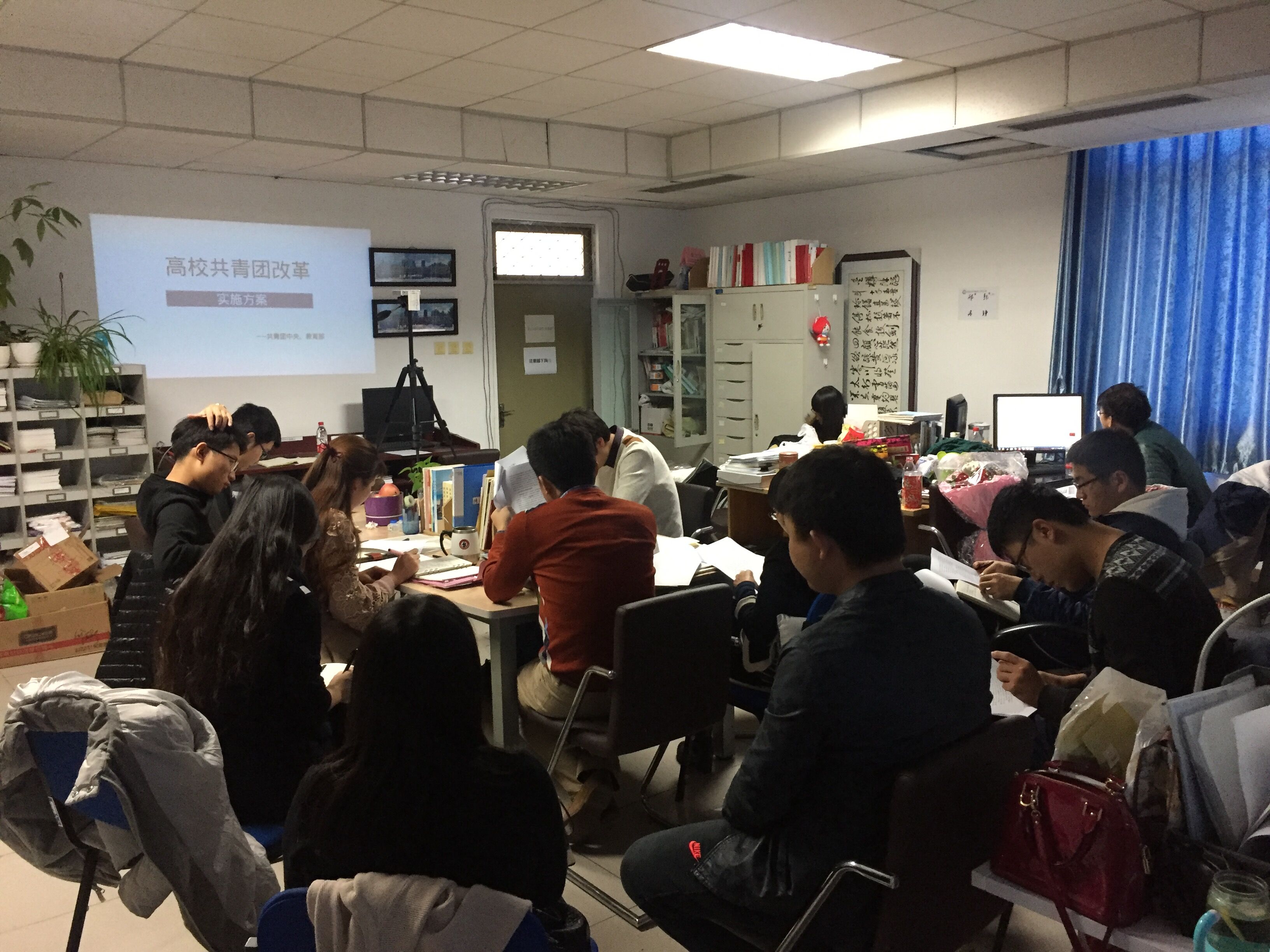 本次培训会主要由三个环节组成,首先由地学院专职辅导员费崴崴带领大家学习了《高校共青团改革方案》。《高校共青团改革方案》由共青团中央和教育部联合下发实施,从指导思想、基本原则和主要目标三个方面提出了高校共青团改革的总体要求,从改革优化领导体制和运行机制、改革健全基层组织制度、改革创新工作方式方法、改革完善团干部选用培养制度、改革强化保障机制五个大方面制订了改革的基本措施。周学智在学习中强调辅导员团队必须牢牢把握共青团“凝聚青年、服务大局、当好桥梁、从严治团”的工作格局,始终把握思想政治引领这一核心任务,认真学习改革方案,提升辅导员队伍的整体素质和工作业务水平,将改革方案落到实处。