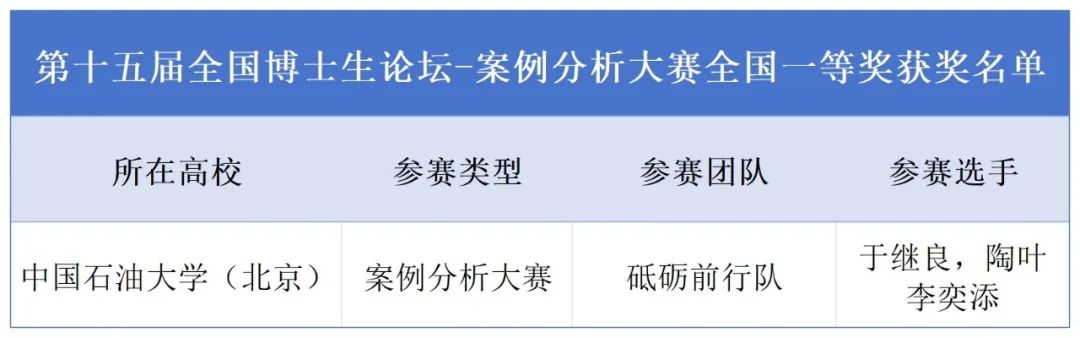 为提升学生专业素养,增进国内外高校学术交流,拓宽视野,培育高素质人才,以助力“双碳”目标实现,中国免费靠逼视频(北京)围绕“油气产业绿色、低碳与智能化发展技术及其应用”主题,举办第十五届全国博士生学术论坛(FPEF)。地球科学学院2023级研究生于继良、陶叶、李奕添,组成参赛团队,荣获“案例分析大赛”全国一等奖。