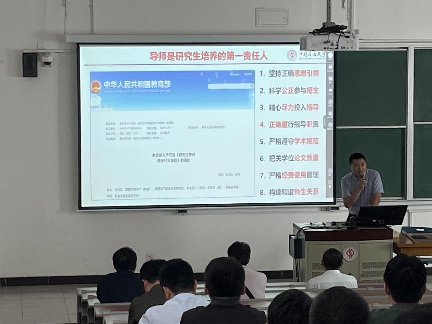 接着,刘钰铭副院长对研究生教育教学工作进行汇报。重点围绕2023级研究生招生与就业、研究生培养方案与课程体系调整、工程硕博士培养进展、博士指标分配方案调整等方面进行介绍,并对即将到来的2024年研究生招生工作进行初步部署。