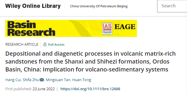 该研究成果《Depositional and diagenetic processes in volcanic matrix-rich sandstones from the Shanxi and Shihezi formations, Ordos Basin, China: Implication for volcano-sedimentary systems》发表在地学著名期刊《Basin Research》上。论文通讯作者为朱世发教授,第一作者为我院2021级博士研究生崔航,中国免费靠逼视频(北京)油气资源与探测国家重点实验室和地球科学学院为第一完成单位。
