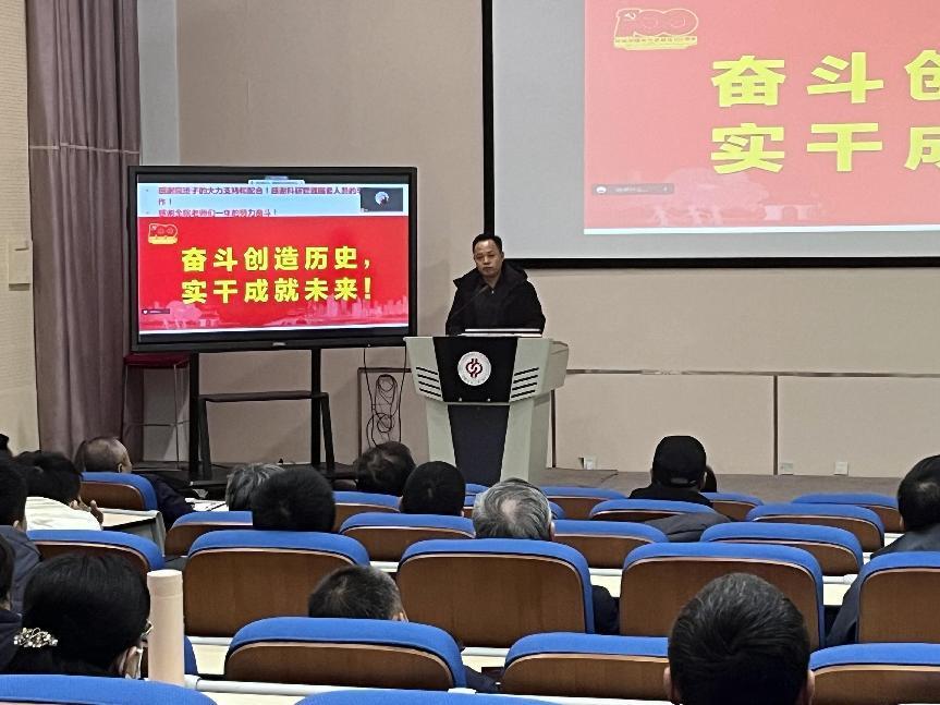 姜福杰书记首先作题为《70载奋勇争先,再拼搏一融双高》报告,2023年学院以党建为引领,坚持为党育人、为国育才,多措并举加强思想政治建设,推动党建与学院事业双融双促协调发展。随后,对学院2023年科研工作进行总结与展望,提出在科研平台建设及高水平科研成果取得新成绩的同时,更应该加强前瞻思考、协同合作、服务大局,在全力强化科研创新水平的同时,做好传帮带,在国家级人才和项目、更高级成果取得新突破。
