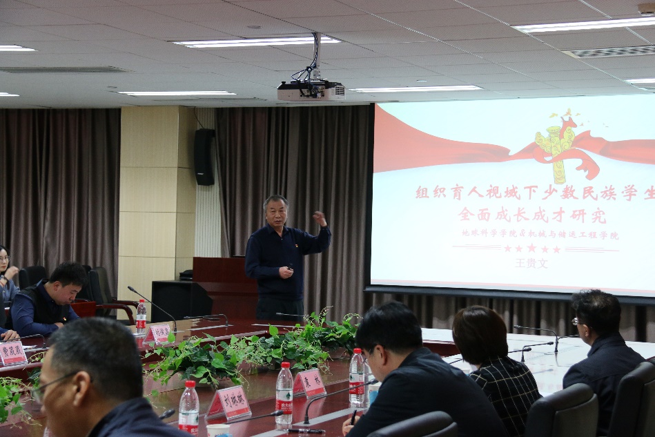 雷玉江结合当前时政热点事件、真实案例,强调了培养优秀的少数民族学生对于实现中华民族伟大复兴中国梦、实现“两个一百年”奋斗目标的重要意义,希望地学院、机械学院党委提高政治站位,充分结合少数民族学生的特点,在广泛调研的基础上精心组织、统筹安排项目进展,促进党建工作与人才培养等业务工作相融合,形成可推广的系列党建制度成果、实践成果,在组织育人视域下推动少数民族学生成长为社会主义建设者和接班人。