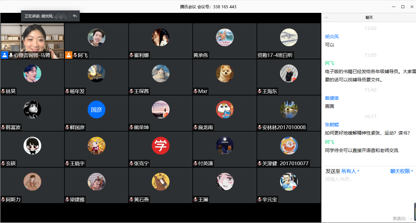 活动开始,马骋与三名同学进行互动,了解最近7天至14天的同学们的身心状态,并为同学们找回上学的感觉以及状态提出了建议。随后,马骋从“行为、身体、情绪、思维和社交”五个方面引导学生对自我的心理健康状况进行评估,并根据自己的状况来平衡“脑力、体力、活力”,以达到恢复活力的目的。倡导同学们在自我调节过程中使用苏格拉底式提问来觉察不合理的信念和寻求专业的帮助。