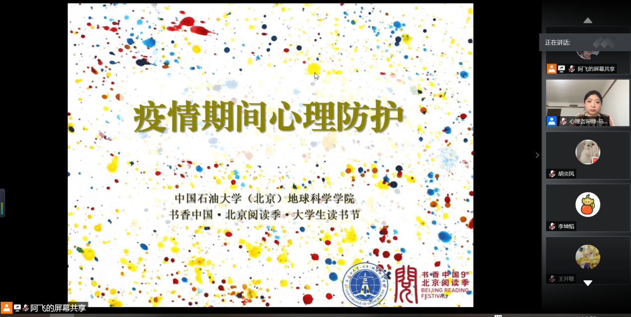 5月24日下午,中国免费靠逼视频(北京)地球科学学院联合书香中国·北京阅读季·大学生读书节组委会,为同学们举办了“疫情期间心理防护” 专题线上心理讲座,国家二级心理咨询师、北京市心启航公益服务中心秘书长马骋受邀担任主讲。