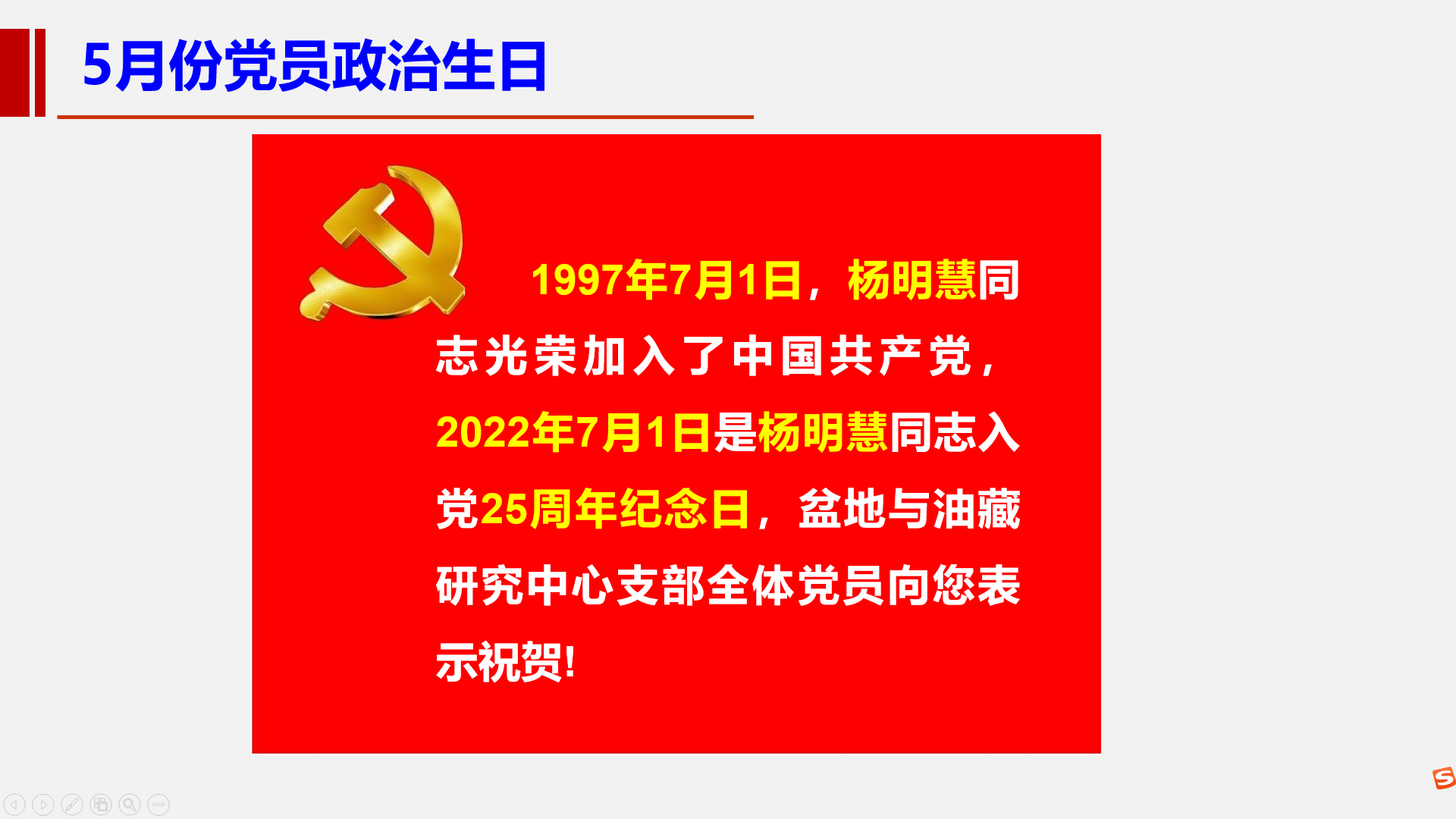 2022年9月1日下午,盆地与油藏研究中心教工党支部组织全体教职工线上进行了“党支部组织生活和教职工政治理论学习”,共有36名党员和教职工参加了本次组织生活会,会议由刘小平主持,会议分为两个阶段。