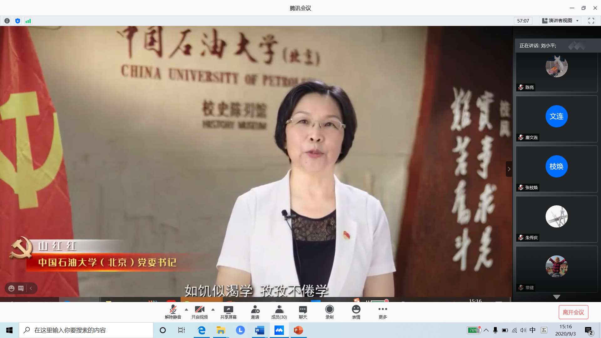9月3日下午,遵照校党委统一部署,地球科学学院盆地与油藏研究中心教工党支部组织召开党员组织生活暨全体教师政治学习讨论会,就“习近平总书记关于‘四史’及新冠肺炎疫情防控的重要论述”、“《中国共产党的九十年》、《简明中国历史读本》以及《抗击新冠肺炎疫情的中国行动》等著作和资料”以及“师德师风建设”开展线上学习与讨论,会议由党支部书记刘小平主持。