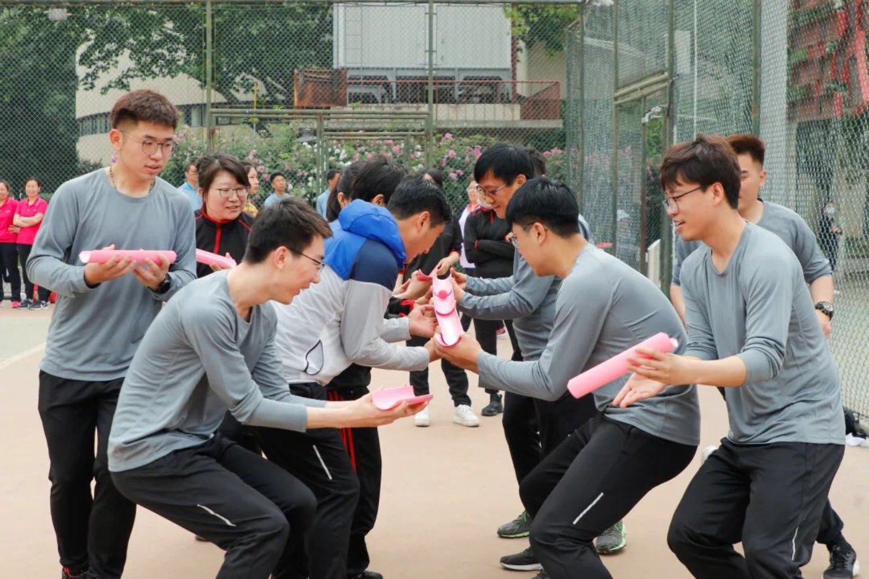 我院教职工共有200余人次参加了彩排、开幕式和个人和集体项目,是近些年来参加运动会人数最多的一次。教职工单独参加了袋鼠跳、能量传输线等6个集体项目,与学生一起参加了彩虹飞舞和摸石头过河2个师生集体混合项目,另外有11名教职工参加了男、女4×100米接力田径项目和男、女1500米个人田径项目。我院教职工26人次在能量传输线、毛毛虫竞速、摸石过河和男子4×100米接力等4个项目取得了好名次。运动员们在赛场上挥洒汗水,团结合作,顽强拼搏,超越自我,充分展现了学院奋发向上、团结一致、永创一流、献身石油的理念和精神风貌。