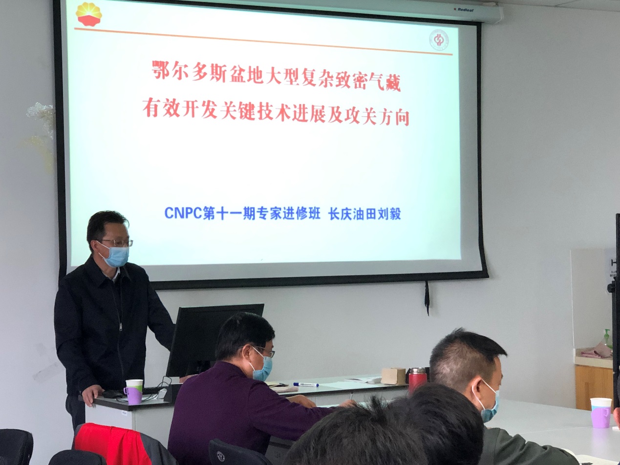 2021年11月18日下午,地球科学学院油气勘探与开发地质系邀请长庆油田公司首席技术专家刘毅教授级高工,在地质楼823开展了主题为“鄂尔多斯盆地大型复杂致密气藏有效开发关键技术进展及攻关方向”的学术报告,由系书记高岗教授主持,我校五十多位师生及数位企业专家到场参加了本次学术沙龙。