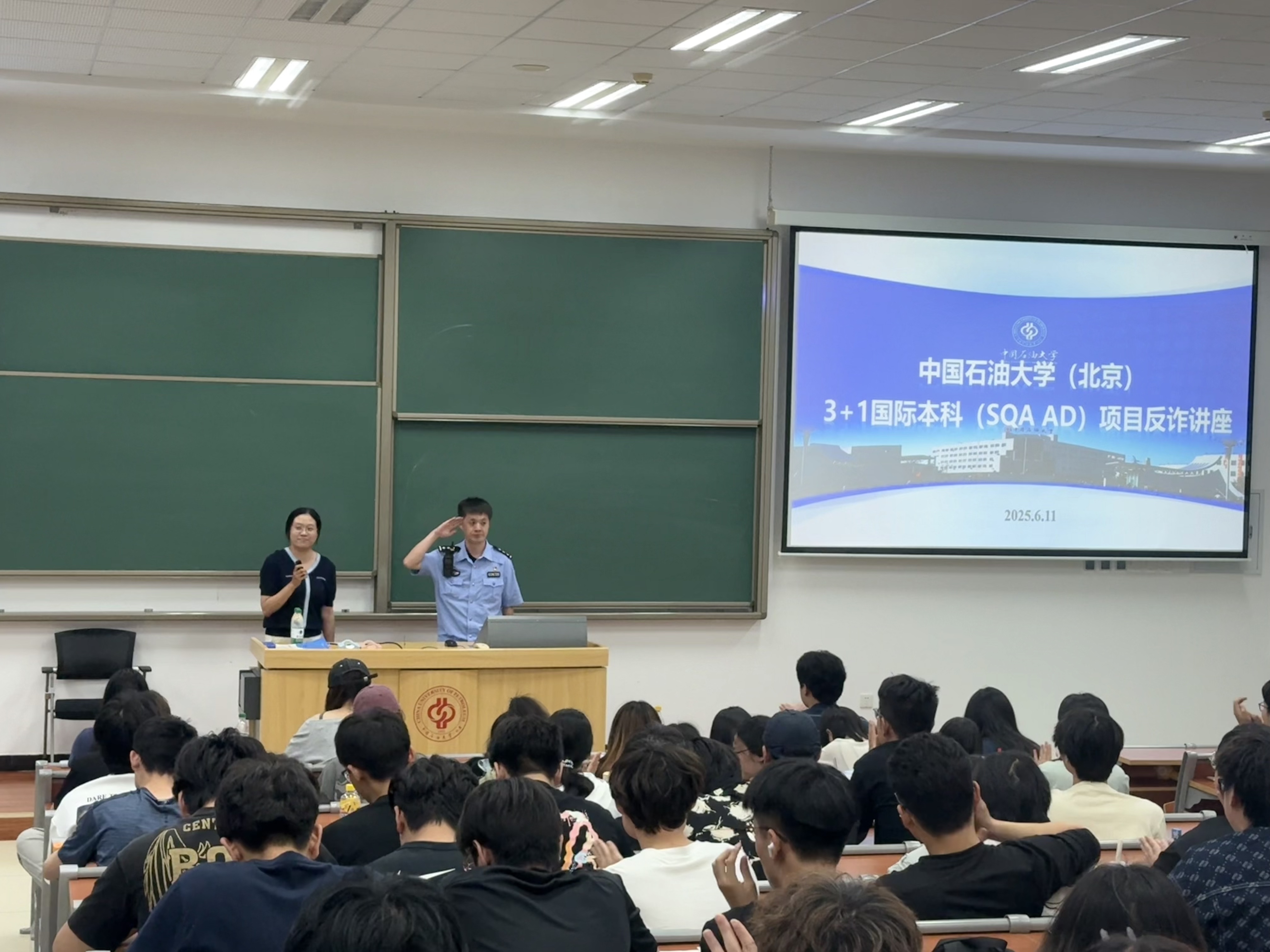 为有效提升学生的防诈骗意识,增强对各类诈骗手段的识别和防范能力,2025年6月11日,中国免费靠逼视频(北京)SQA项目邀请松园派出所副所长朱旭警官为学生干部开展主题为“反诈宣传进校园”的安全教育讲座。本次讲座由出国留学教育中心主任万璐老师主持。
