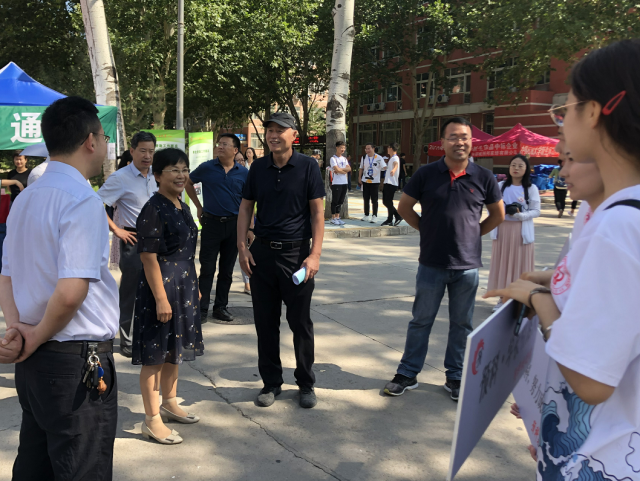 新生报到期间,校党委书记山红红老师、学院党总支书记、院长陈崇河老师、学院副书记、副院长李水老师、国际合作教育中心主任曹学庚老师等以及其他部门院系领导先后莅临迎新现场,询问报到情况,并与学生、家长进行亲切交谈。