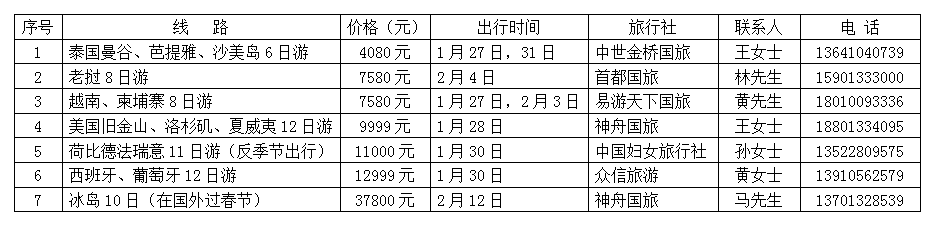 | 关于公布2018年寒假教职工自费旅游线路信息的通知 |