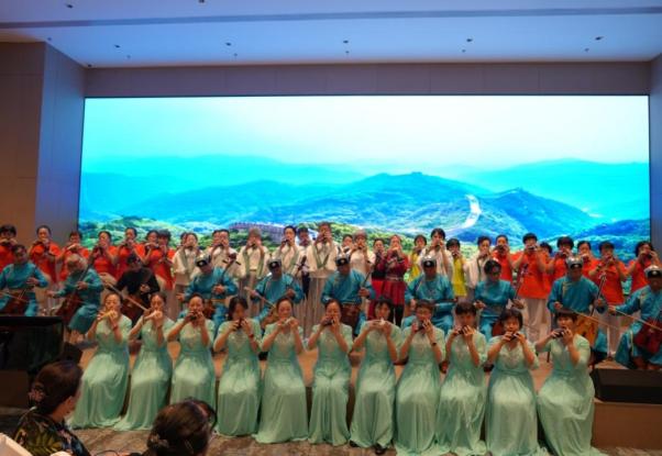 此次演出在陶笛曲目《北国之春》的表演中悠然奏响,展示了以陶笛、马头琴、旗袍秀、舞蹈和太极剑为主要形式的14个节目。悦耳动听的笛声、绚丽多姿的舞蹈将活动氛围推向高潮。在37名陶笛演员和13名马头琴演员合奏的《龙的传人》的乐曲声中,演出圆满结束。泰康燕园总经理葛明为演出队伍颁发“志愿服务证明”,并与全体演员合影留念。