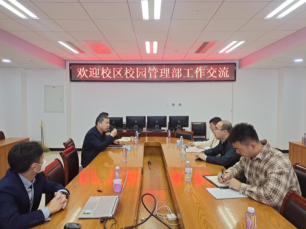 会上,王英国对牛超一行来访表示欢迎,并从发展历程、组织架构、发展目标、经验做法等方面介绍了我校后勤基本情况。其中,根据调研内容重点介绍了节能减排、餐饮服务、物业管理、公寓管理等方面的具体举措和管理经验。牛超一行介绍了克拉玛依校区校园管理部的基本情况,并对校本部的周到安排表示感谢。随后,参会双方就调研内容进行了深入交流探讨。