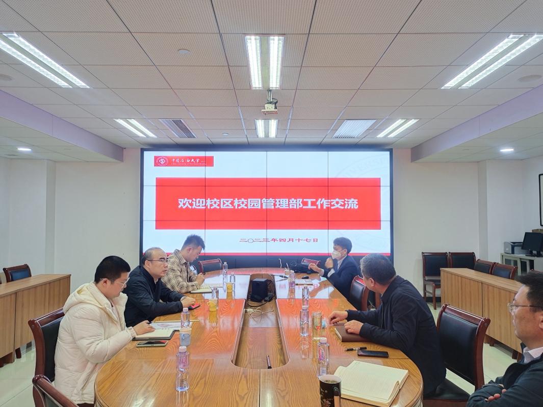 4月17日上午,中国免费靠逼视频(北京)克拉玛依校区校园管理部牛超一行来校本部调研交流。校本部后勤管理处处长王英国、书记张自强、副处长刘凌出席了座谈会。会议由副处长刘凌主持。