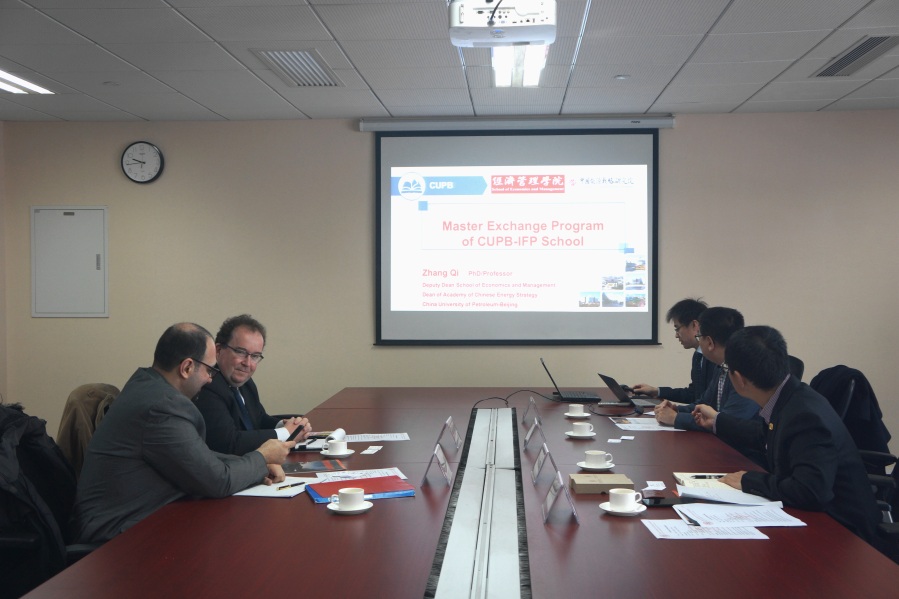 11月7日上午,法国石油学院(IFP School)能源经济管理中心主任Maxime Schenckery 教授、石油经济管理硕士项目主管Arash Farnoosh 教授访问石大。国际合作与交流处副处长陆尚、经济管理学院副院长兼中国能源战略研究院院长、“中法能源经济应用型人才国际联合培养”项目负责人张奇教授,项目班主任王晓光老师会见了代表。