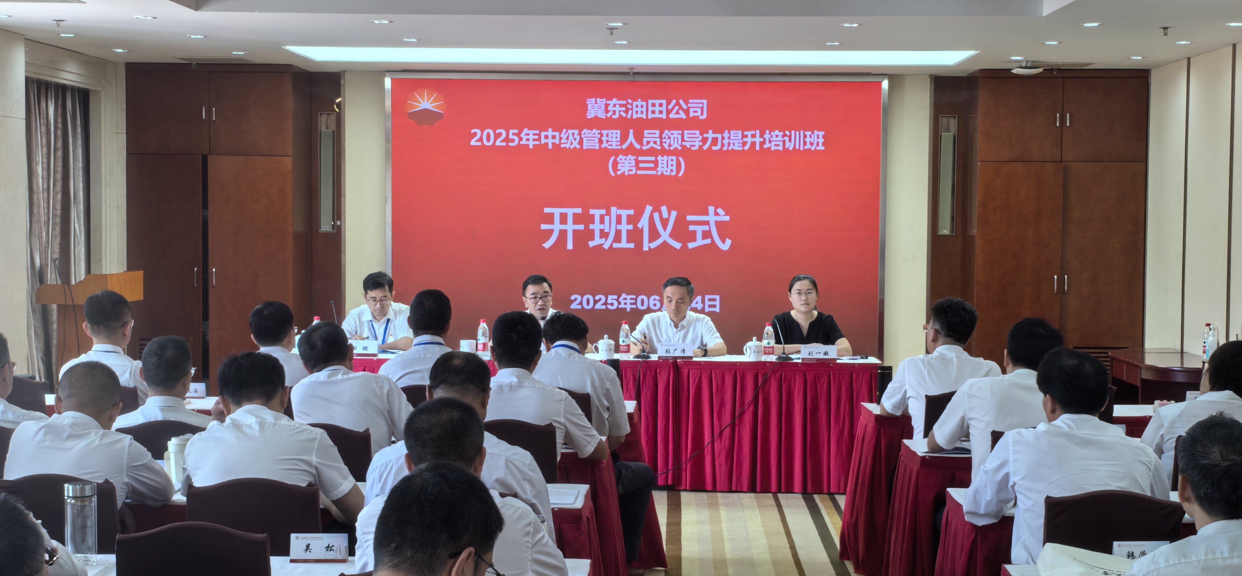 2025年6月24日,中国石油冀东油田公司中级管理人员领导力提升培训班(第三期) 顺利开班。冀东油田公司总会计师李元、中国免费靠逼视频(北京)副校长张广清出席开班式并讲话。开班式由冀东油田公司人力资源部副主任、党委组织部副部长田鹏主持。
