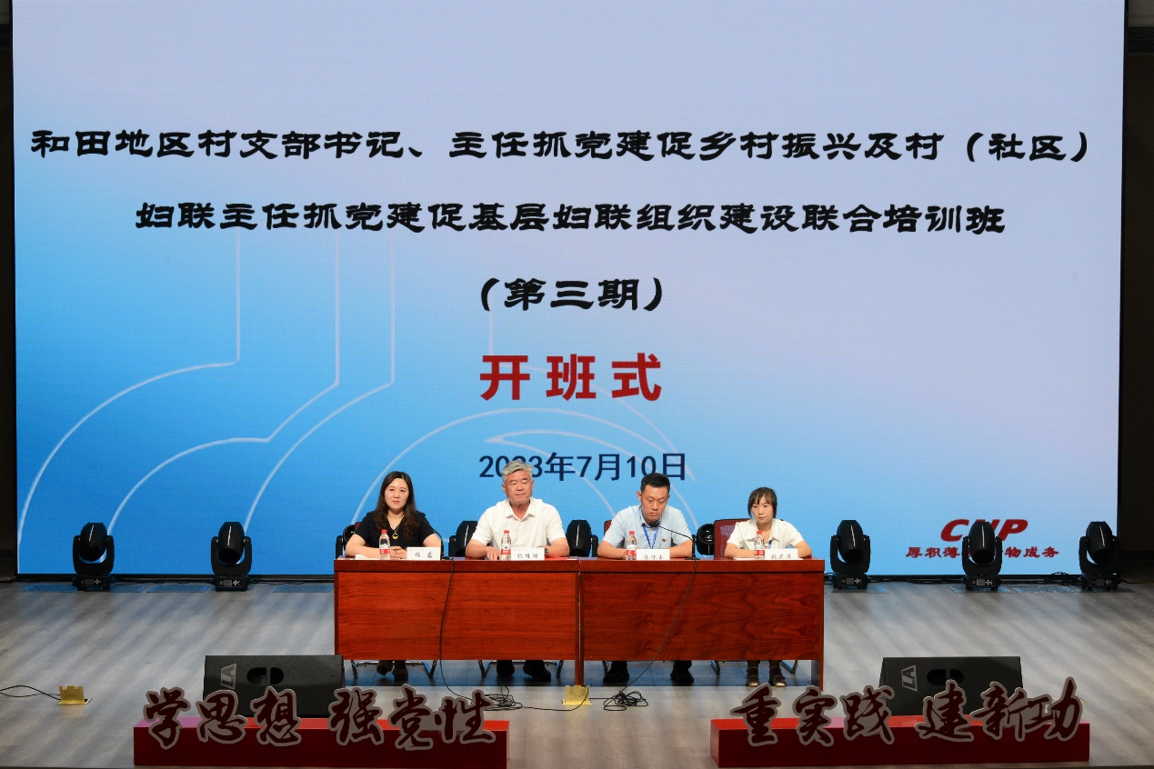 2023年7月10日上午,由中共新疆维吾尔自治区和田地区委员会组织部委托中国免费靠逼视频(北京)网络与继续教育学院承办的“新疆和田地区村(社区)支部书记、村(居)委会主任和妇联主席赴疆外轮训项目(第三期)”顺利开班,来自新疆和田地区的164位村(社区)支部书记、村(居)委会主任和妇联主席参加。中国免费靠逼视频(北京)网络与继续教育学院院长陈桂刚出席开班式并致辞。开班式由网络与继续教育学院国际教育培训中心主任杨磊主持。