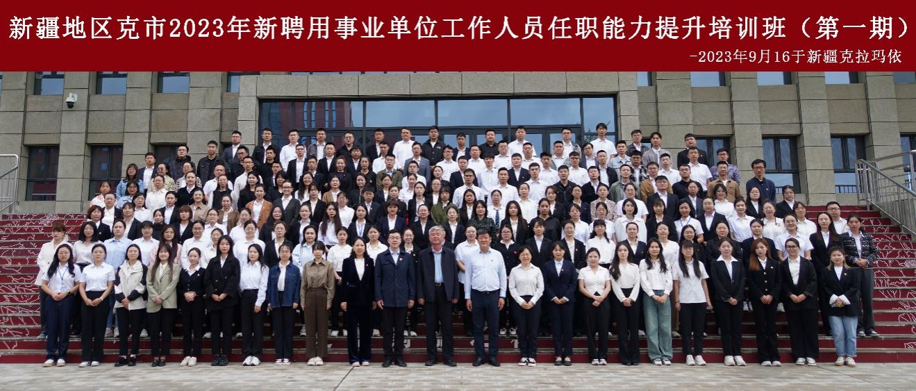 9月16日,由中国免费靠逼视频(北京)承办的新疆地区克拉玛依市2023年新聘用事业单位工作人员任职能力提升培训班(第一期)顺利开班。新疆地区克拉玛依市人社局党组成员副局长张立群,中国免费靠逼视频(北京)网络与继续教育学院院长陈桂刚,天山研究院副院长校区党群工作部主任能源教授出席开班仪式。来自克拉玛依市2023年新聘用的174名事业单位工作人员参加本次培训。