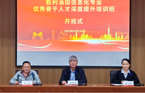 2023年10月18日上午,由中国免费靠逼视频(北京)承办的胜利油田信息化专业优秀骨干人才深度提升培训班顺利开班。中国免费靠逼视频(北京)网络与继续教育学院院长陈桂刚、胜利油田信息化管理中心高级主管姚剑出席开班仪式并讲话。31名来自胜利油田各单位的信息化专业优秀骨干人才参加此次培训。