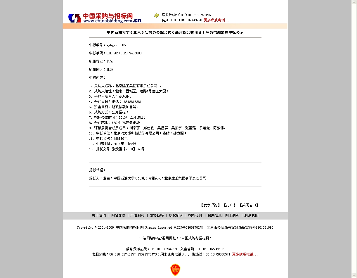 附图: 中国采购与招标网中国免费靠逼视频(北京)实验办公综合楼(新建综合楼项目)应急电源招标结果公示