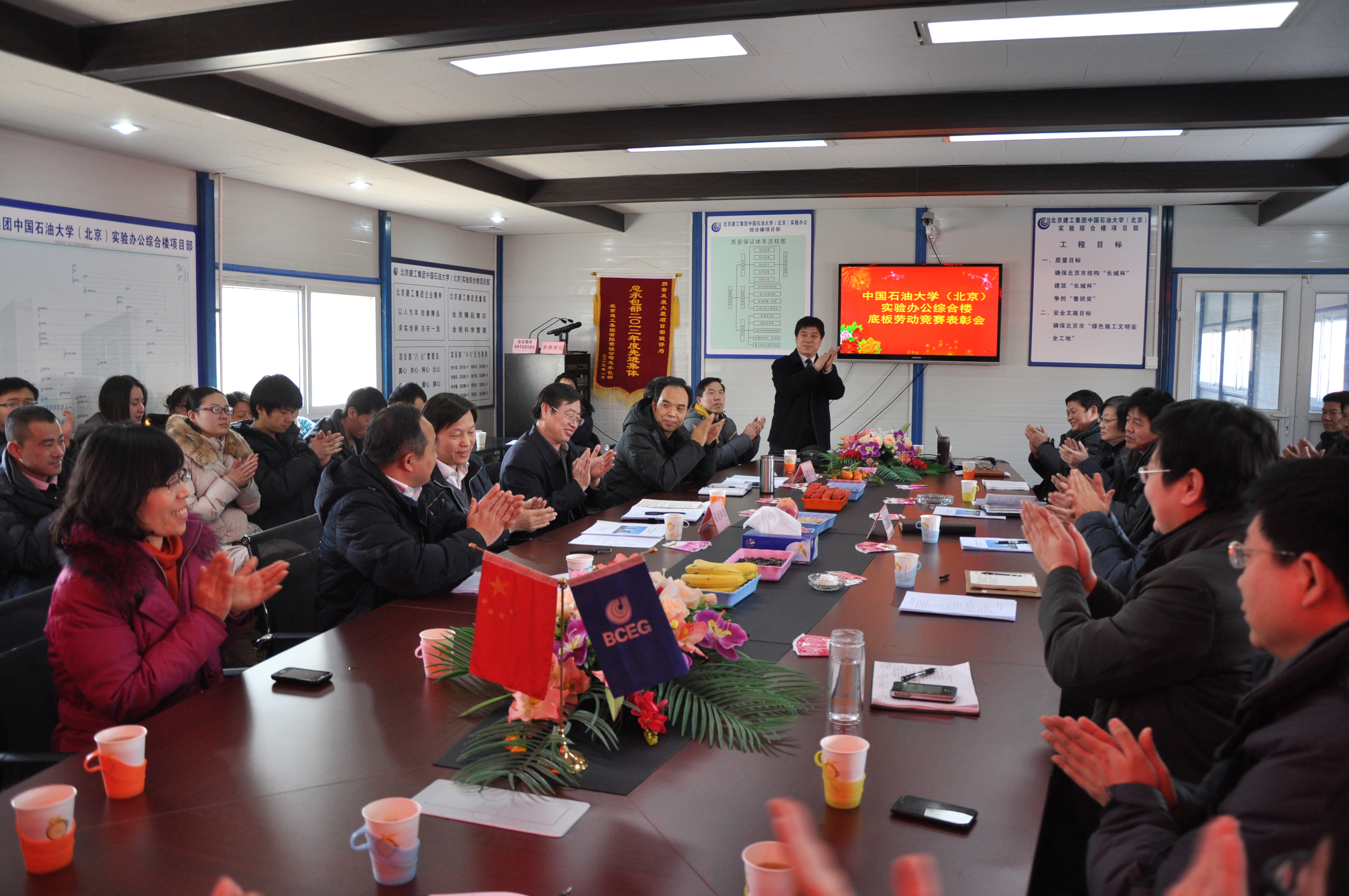 2013年2月2日,实验办公综合楼基础底板浇筑阶段工作总结会暨劳动竞赛表彰会在施工项目部会议室举行,校领导张士诚副校长以及该工程施工单位、监理单位、沉降监测单位、跟踪审计单位及项目管理单位相关人员出席会议。在听取工程前阶段工作进展及下阶段工作部署汇报后,为前期施工中涌现的优秀一线员工和先进班组举行了颁奖仪式。最后,张士诚副校长做了总结讲话,他充分肯定了综合楼工程参建各方付出的辛勤努力,希望大家再接再厉,齐心协力,把好工程安全关、工程质量关,建设一个让全校师生员工满意的放心工程、样板工程。