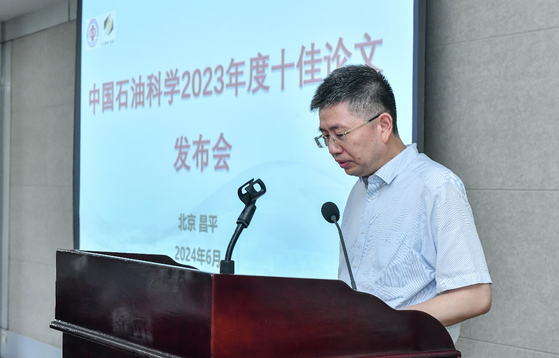 金衍致欢迎辞,向与会嘉宾表示热烈的欢迎和诚挚的感谢。陈勉主编介绍了《石油科学通报》及2023年度十佳论文的评选情况。中国石油科学2023年度十佳论文和提名论文在全体嘉宾的见证下隆重发布,9位院士和7位来自中国石油学会、中石油、中石化、中海油的领导共同为获奖作者颁奖。