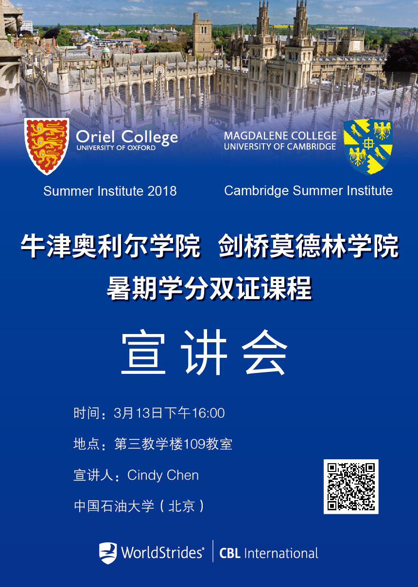 2018年牛津大学奥利尔学院,剑桥大学莫德林学院暑期项目宣讲会及报名通知