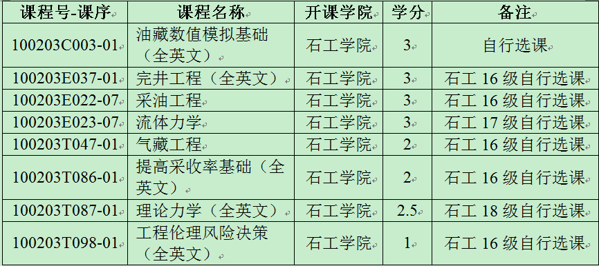 表二所列课程为对应课程的全英文课堂,请学生通过综合教务系统自主选课。