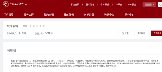 回答:缓考申请可在考试前通过e服务提交申请表单;