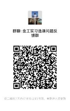 (3)教务处不置入任何课程,金工实习进行开放式选课,请同学按时选课。选课过程中如有任何问题,请联系工程训练中心肖老师,联系电话:18068910812;或者添加微信群及时反馈。微信群二维码如下: