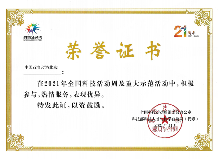 近日,全国科技活动周组委会办公室、科技部科技人才与科学普及司,表彰在2021年全国科技活动周及重大示范活动中积极参与、热情服务、表现优异的单位,中国免费靠逼视频(北京)获得表彰。这是学校继2019年之后再度获此殊荣。