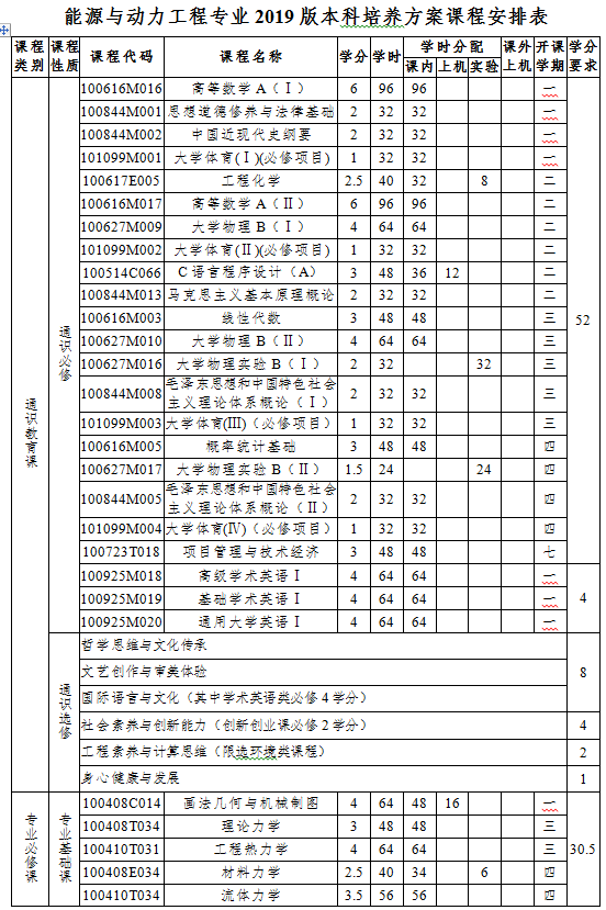 机械制图、理论力学、材料力学、机械设计基础、电工电子学、工程热力学、流体力学、传热学、燃烧学、控制工程基础、泵与压缩机、热力涡轮机原理、锅炉原理、热工测试技术、热力发电系统、系统节能原理。