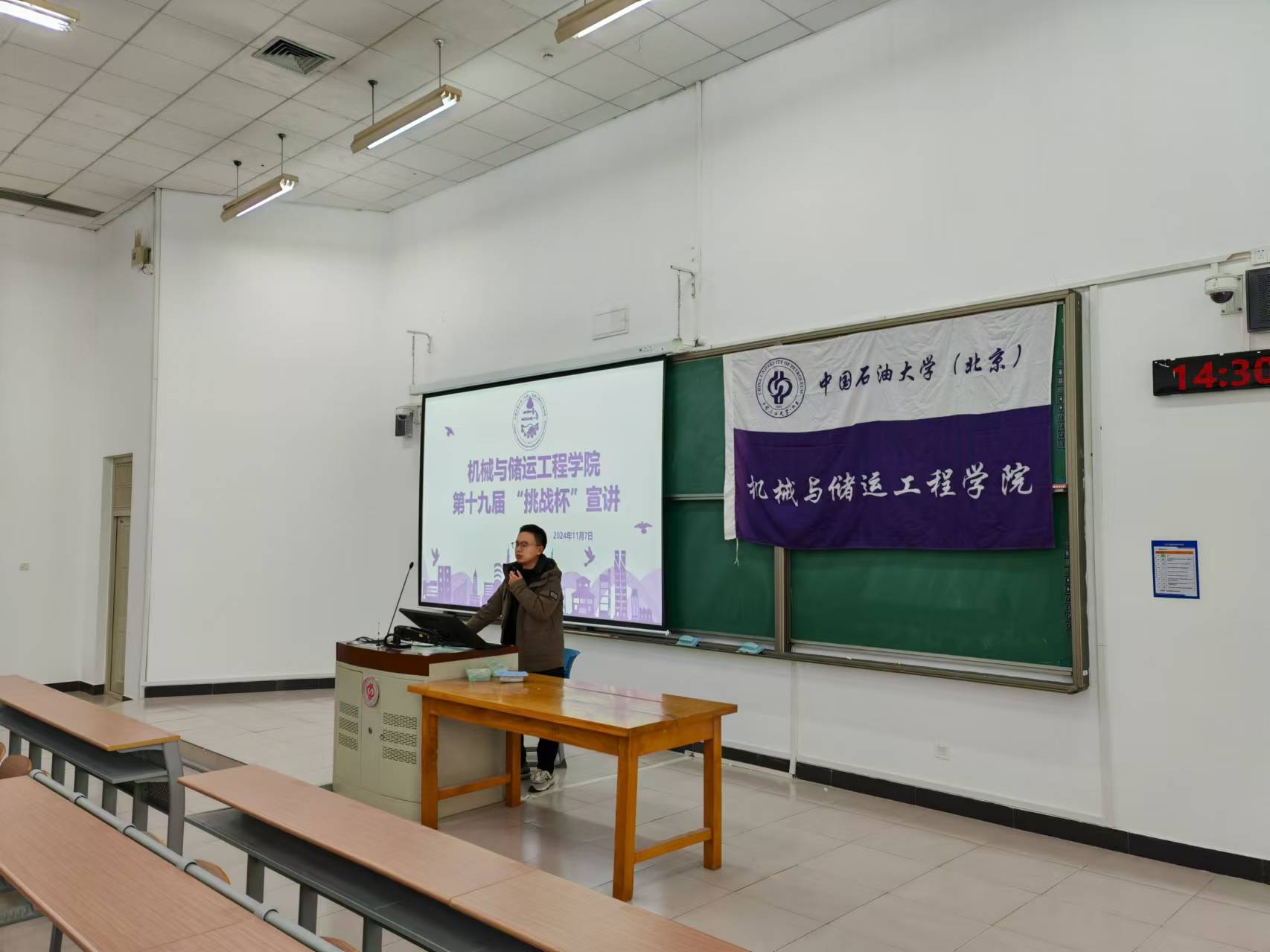 “挑战杯”全国大学生课外学术科技作品竞赛是目前影响力和知名度最大的比赛之一,简称"大挑",在促进青年创新人才成长、深化高校素质教育、推动经济社会发展等方面发挥了积极作用。主体赛作品包含自然科学类学术论文、哲学社会科学类社会调查报告、科技发明制作三大类。每两年举办一届,旨在鼓励学生勇于创新,迎接挑战。为激发同学们参赛热情。11月7日,机械学院举办第十九届大挑动员暨政策宣讲会。