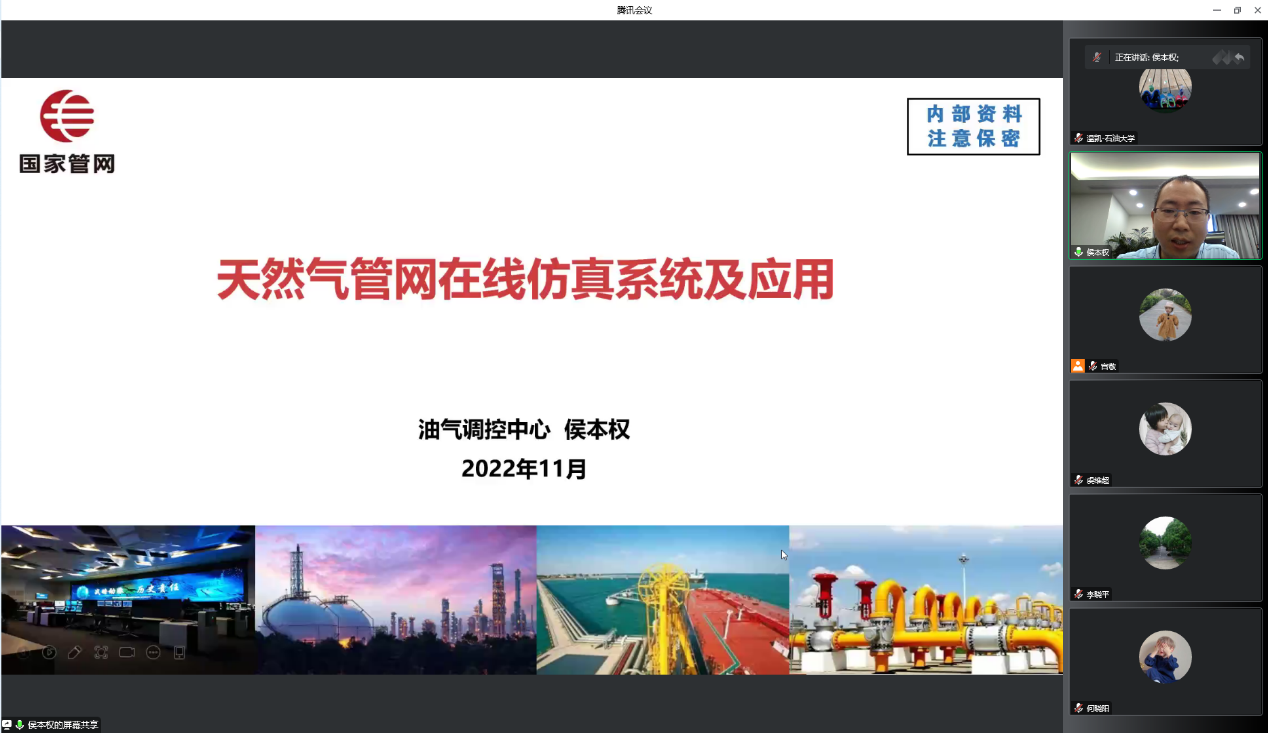 为加强储运行业前沿科技交流了解,提升储运学生专业知识水平,开阔科学视野,宫敬教授于11月26日上午邀请国家管网集团油气调控中心天然气管网优化仿真业务专家侯本权高工在线上召开了主题为“天然气管网在线仿真系统及应用”的线上讲座,储运专业近百名研究生全程参与学习。