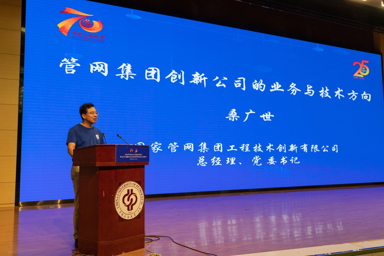 特邀报告环节由梁永图和王玮主持。桑广世作了题为“管网集团创新公司的业务与技术方向”的报告,从公司业务及发展方向等方向开展介绍,着重统筹引领工程建设技术进步与创新,统一设计理念、统一行业标准,为工程项目前期和设计全过程管理提供全方位支撑服务,充分保证“全国一张网”规划下,油气储运设施的统一性、完整性、科学性、先进性、适用性;张鹏就“新形势下油气管道行业的挑战与思考”为切入点,提出要着重抓好数字化、低碳化顶层规划,与油气行业技术深度融合,挖掘数据价值,做好能源结构转型;储祥萍作了题为“智能工厂3.0建设思考”的报告,从智能工厂建设出发,着重探讨深化数字化转型的改革战略,用数字构建“企业大脑+未来工厂”,实现业务赋能。李清平作了题为“我与“油气管道输送与流动安全保障研究组”合作22年的成果”的报告,回顾了与研究组22年的合作;董红军从“数智赋能国家管网LNG接收站安全运营”为切入点,提出要锚定痛点,提前规划,做好统建系统的结合,以数智打破困局,赋能LNG站场安全运营。宫敬教授做油气管道输送与流动安全保障研究组25年研究生培养与科研回顾汇报,回顾研究组25年来的研究历程,为我国能源行业做出的突出贡献,号召大家不忘峥嵘岁月,勇攀时代高峰。会议最后,与会人员同唱校歌“我为祖国献石油”,为母校70周年华诞送上祝福。