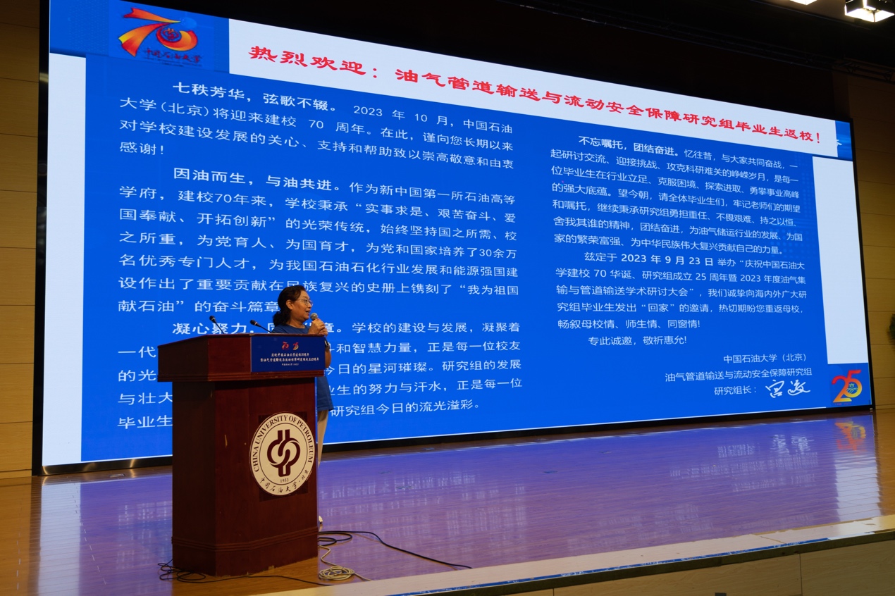 为庆祝学校70华诞,庆祝油气管道输送与流动安全保障研究组成立25周年,增强广大师生校友凝聚力,2023年度油气集输与管道输送学术研讨会于2023年9月23-24日在学校召开。