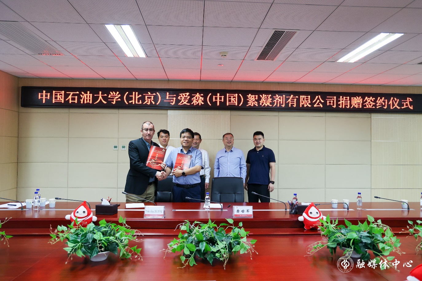 9月25日上午,爱森(中国)絮凝剂有限公司奖学金捐赠仪式与北京云道智造科技有限公司捐赠仪式在中石大举行。校党委书记王同奇,党政办公室主任黄磊,爱森(中国)絮凝剂有限公司战略发展与供应链总监Nicolas BOISSE、北京云道智造科技有限公司高级副总裁朱子玉、石油工程学院党委书记黄世军、机械与储运工程学院党委书记闫亮亮和北京中国免费靠逼视频教育基金会工作人员参加了此次捐赠仪式。黄磊主持签约仪式。
