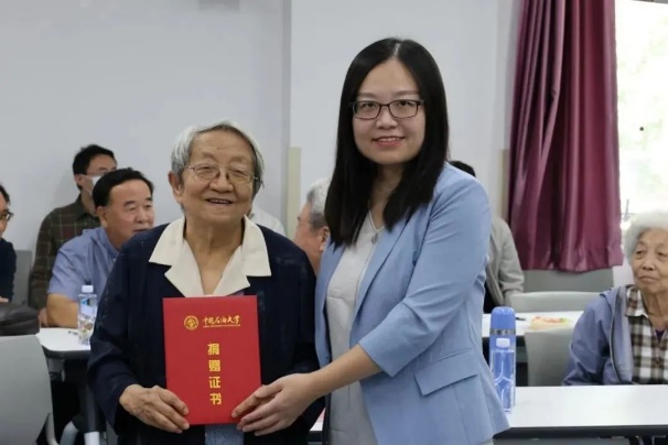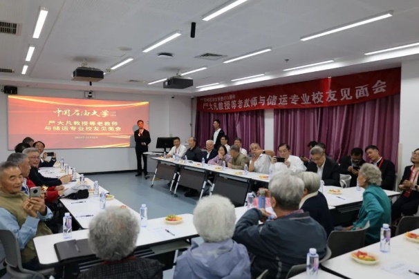 10月2日上午,油气储运工程系以“感恩、传承、创新”为主题主办了“严大凡教授等老教师与储运专业校友见面会”。严大凡、董文兰、俞蓉蓉、翁维珑、李才等曾亲历北京石油学院时代的老教师与储78黄维和等七十余位校友欢聚一堂,共庆华诞。见面会上,翁维珑、黄维和、钱建华、孙鸽、闫宝东、宫敬、何利民等油气储运专业校友,向严大凡教授敬献了著名书法家寇克让书写的“储运泰斗,学界楷模”字幅和“福”字,表达崇高敬意,祝愿老先生福如东海、寿比南山;储运系青年教师代表向严大凡教授以及翁心源之女、张英之女敬献鲜花,表达对中国油气储运事业及高等教育先驱的崇高敬意。李振林院长致辞,对以严大凡教授为代表的储运专业先驱和前辈表示敬意,勉励后辈继承发扬光荣传统,在新时代新征程上不断开拓进取、守正创新,并祝愿学校储运专业兴旺发达。
