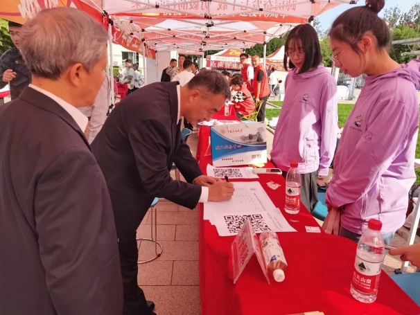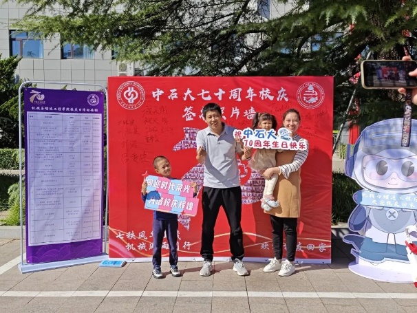 校友们从北校园北门进入学校,在机械学院校友报到处签到,留下对母校的祝福并在打卡点合影留念。