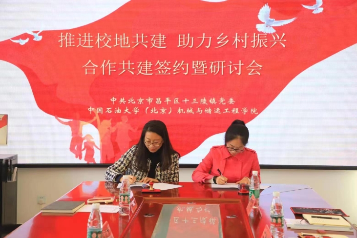 最后由鞠斌杰与冯铭明分别代表机械与储运工程学院、十三陵镇党委共同签署了合作共建协议。