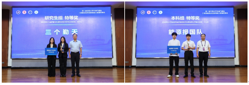 会上,刘建武、陈宏举、刘宇、李振林为获二等奖的团队颁奖,张鹏、冷绪林为获一等奖的团队颁奖,付立武、张对红为获特等奖的团队颁奖,宋飞、张文伟为获奖高校代表颁发了优秀组织奖。