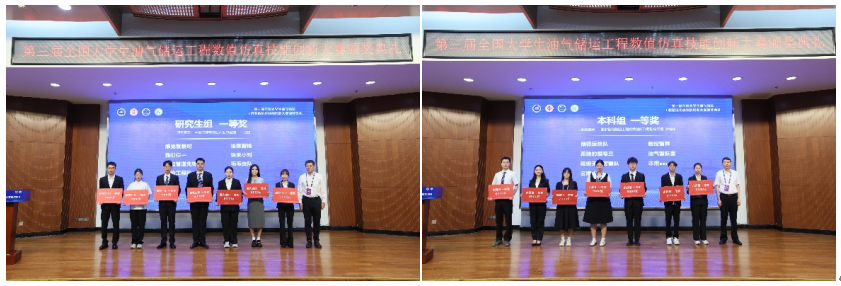 学校副校长张广清,国家能源局石油与天然气司副司长韩玉柱,国家管网集团总经理助理丁建林,国家管网集团科学技术研究总院院长张对红,中油国际管道公司副总经理张鹏,国家管网集团储运技术发展有限公司副总经理付立武,国家管网集团北方管道有限责任公司副总经理宋飞,国家管网集团工程技术创新公司副总经理冷绪林,中国石油管道局工程有限公司首席专家张文伟,北京云道智造公司、中石化工程建设公司、中海油研究总院、中国仿真学会相关代表以及参赛高校师生出席大赛颁奖大会。